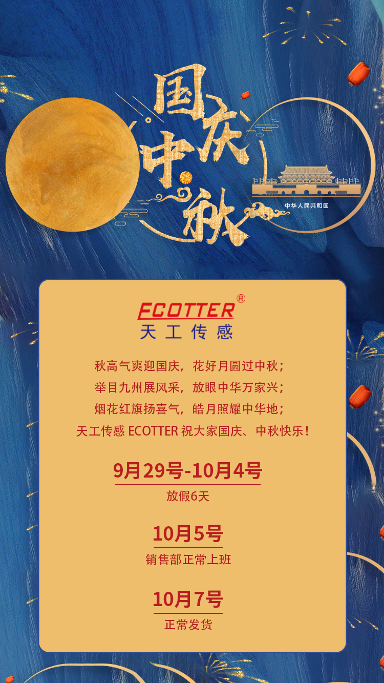 【迎中秋 慶國慶】天工傳感ECOTTER生產(chǎn)總部9月29號-10月6號放假,10月7號正常發(fā)貨