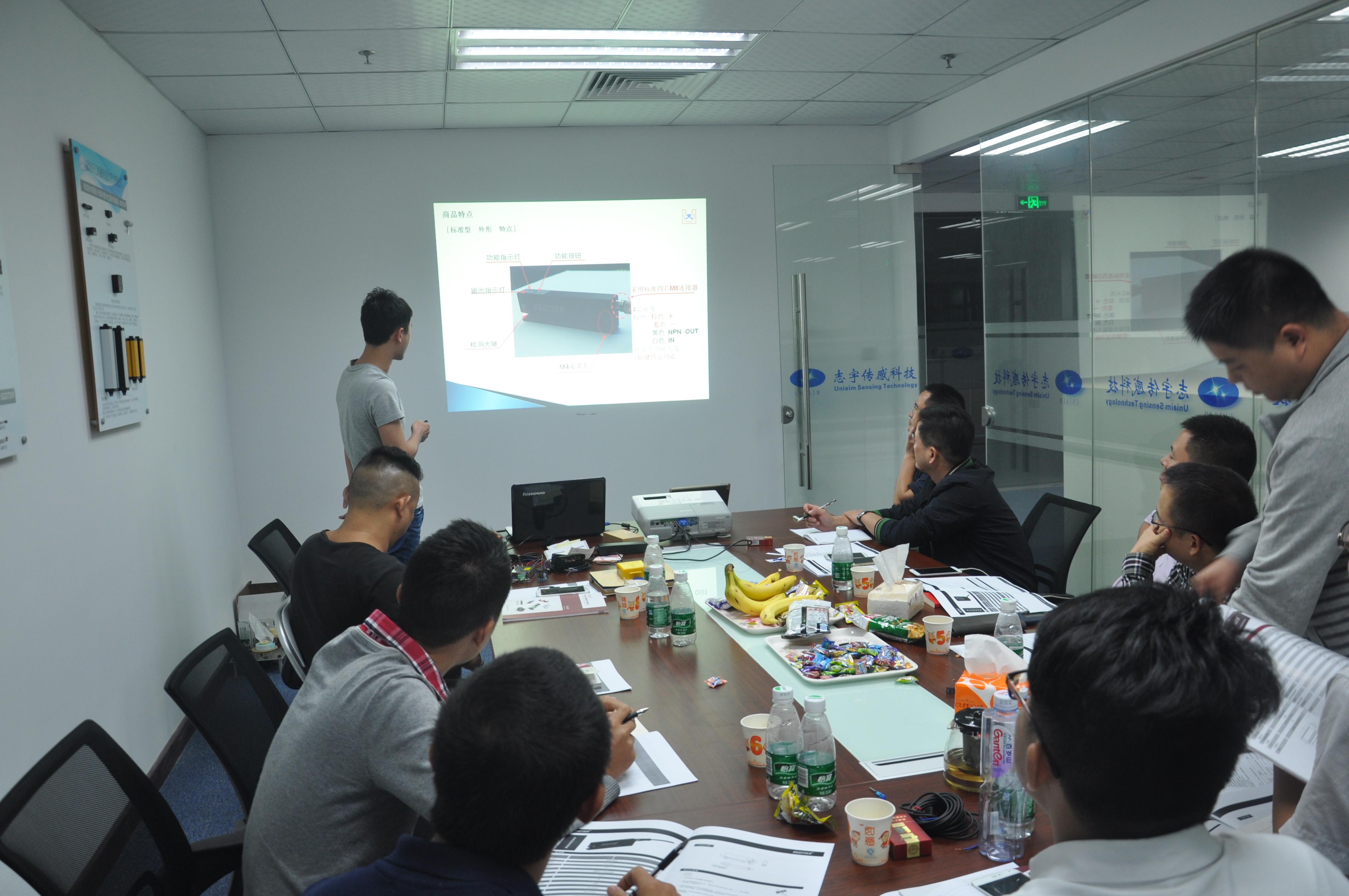 大會首先由公司總經(jīng)理?xiàng)顭ㄓ顚λ袇藛T進(jìn)行了營銷及公司文化方面的培訓(xùn),并由研發(fā)部的三位研發(fā)人員進(jìn)行了產(chǎn)品方面的培訓(xùn)。主要就公司三款新品:激光位移傳感器、標(biāo)簽傳感器及機(jī)器視覺進(jìn)行了全方位的講解并現(xiàn)場進(jìn)行功能演示。