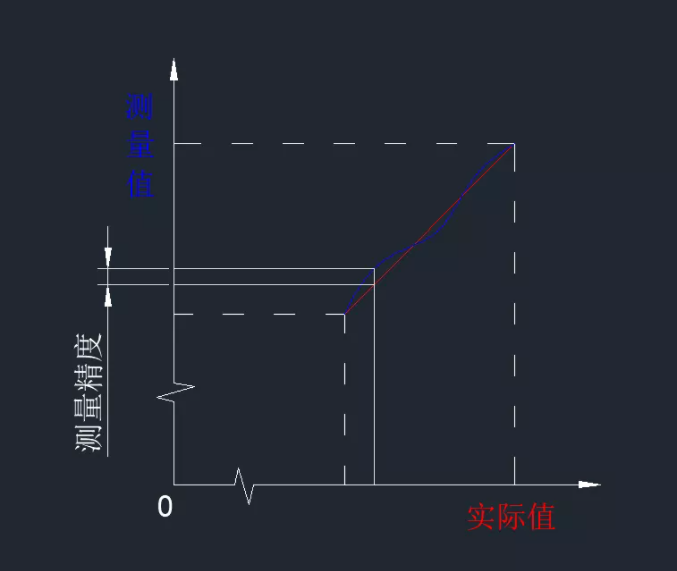 理想狀態(tài)下,物體實際位移值,與傳感器測量值,呈直線變化關(guān)系;但實際上傳感器的測量值與物體實際位移值會有偏差,該偏差的最大值稱為精度。