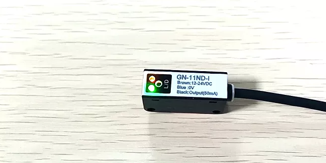 條型光背景抑制光電開關,它的光斑不同于普通的光電開關,它是長條形的,檢測到物體的面積大。經(jīng)常用于檢測一些外形比較復雜的物體,如視頻中的黑色吹盤,凹凸不平,形狀復雜,依然能夠準確檢測到。這款GN-11ND-I的黑白差值在1mm以內(nèi),視頻里可以看到無論是黑色面還是白色面都能在65mm處檢測到。