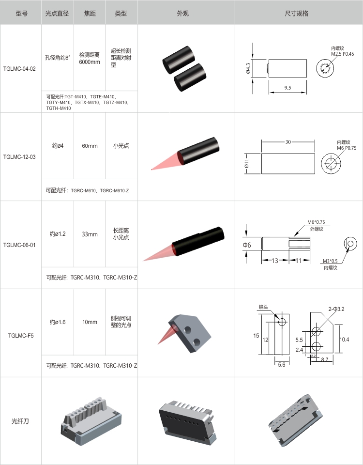 適用于M4對射光纖的聚光鏡,檢測距離可達(dá)6000mm。