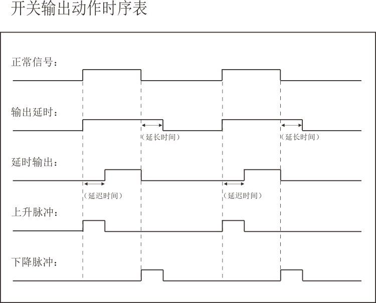 下降沿脈沖信號(hào):在這種模式下,傳感器檢測(cè)到物體后,不給信號(hào),物體離開后開始給信號(hào),信號(hào)持續(xù)設(shè)定的時(shí)間。